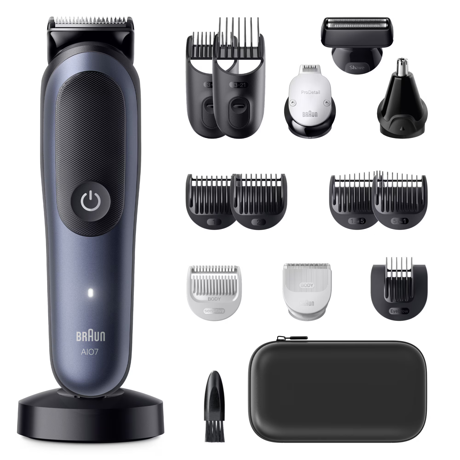Aparat de tuns multifunctional Braun All-in-One Seria 7 AIO7580,Lama ProBlade, AutoSense,8 Piepteni, 1 Cap tuns SkinGuard,1 Cap ras PrecisionShave, 1 Cap tuns urechi/nas,1 Cap ContourPro,Autonomie 120
