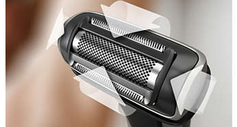 Varfuri rotunjite si folii hipoalergenice pentru confortul pielii Capul aparatului de ras dispune de varfuri rotunjite brevetate si o folie hipoalergenica pentru a proteja pielea in timpul raderii. Lamele bidirectionale taie firele de par mai lungi, care sunt rase de folie pentru un rezultat mai precis. |