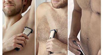 Rade si tunde cu incredere toate zonele corpului, cu un singur aparat Rade si tunde comod sub linia gatului. Comuta usor intre ras si tuns si regleaza lungimile de tuns fara sa schimbi accesoriile. Conceput ca solutie de ingrijire sigura si confortabila pentru spate, umeri, piept, abdomen, axile, brate, zona inghinala si picioare. |