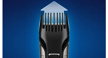 Lame din otel inoxidabil si pieptene reglabil, tunde parul de la 3 la 11 mm Aparatul de tuns integrat si pieptenele reglabil cu 5 setari de lungime sunt concepute sa ofere mai multa putere, pentru a taia chiar si cel mai des par. Lamele din otel ale aparatului de tuns se ating usor, ascutindu-se reciproc in timp ce tund, astfel incat sa ramana extrem de ascutite si de eficiente. Lamele au varfuri rotunjite pentru un contact delicat cu pielea, pentru a preveni zgarierea. Pentru a-ti mentine lungimea de par dorita sau pentru a obtine un aspect natural, regleaza pieptenele la o lungime cuprinsa intre 3 si 11 mm. Poti folosi sistemul de ras de pe cealalta parte pentru un rezultat mai precis. |