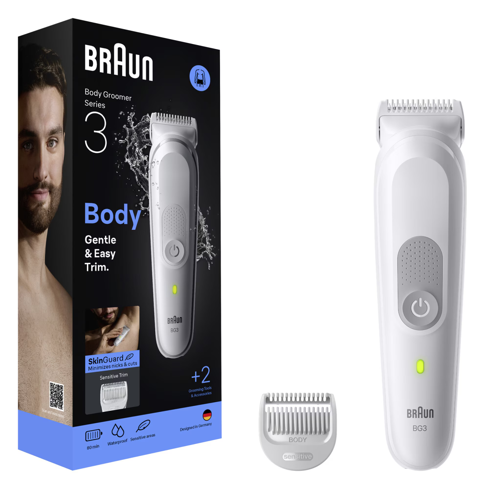 Aparat de ingrijire corporala Braun Seria 3 BG3500,Tehnologie SkinGuard, Delicat pentru zone sensibile, Autonomie 80 minute, Rezistent la apa, Gri deschis