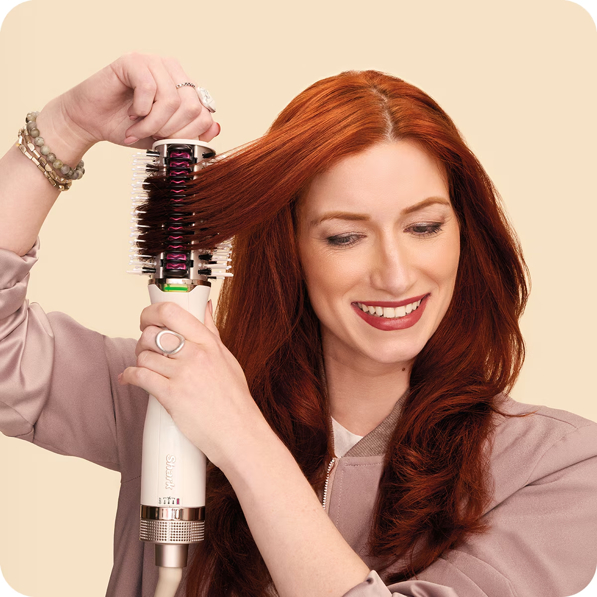 Perie cu aer cald Shark SmoothStyle HT202EU, 900W, 3 trepte de temperatura, mod par umed / par uscat, invelis ceramic, temparatura 50-215°C, culoare ivory