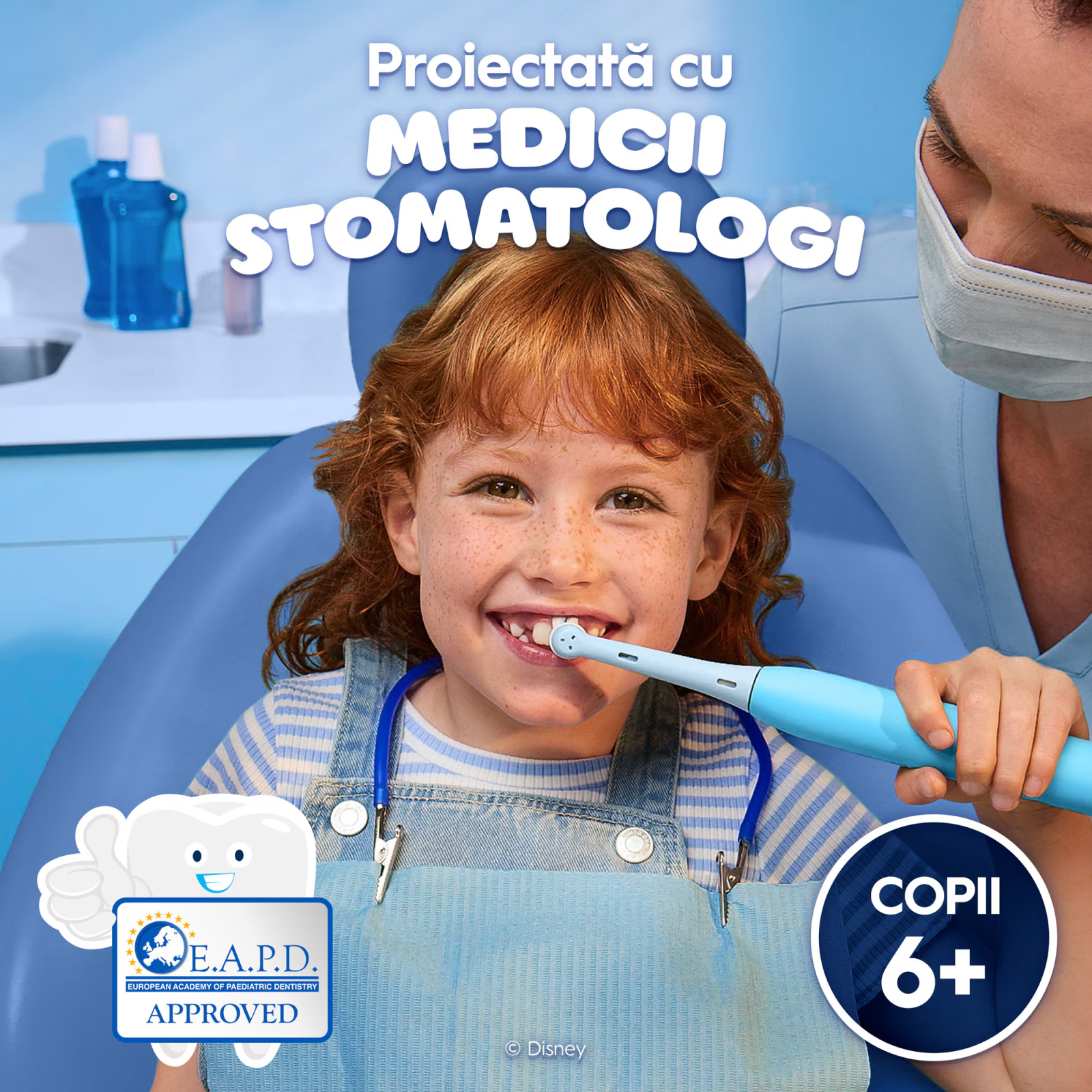 Periuta de dinti electrica Oral-B iO Kids Disney Stitch, 1 Capat de periaj, 1 Trusa de calatorie, 3 moduri, Modul sensibil prietenos pentru copii, Cronometru muzical de 2 minute, Pentru varste de 6+
