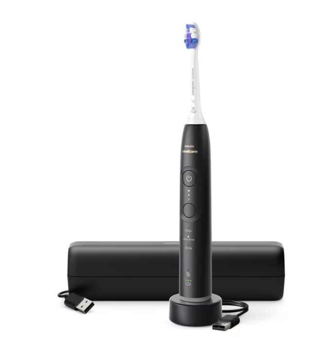 Periuta de dinti electrica Philips Sonicare HX7411/02, 62.000 miscari/minut, autonomie 21 zile, 3 moduri de periere,3 intensitati, senzor presiune luminos, functia BrushSync, capat de periere Senstive, toc transport, negru