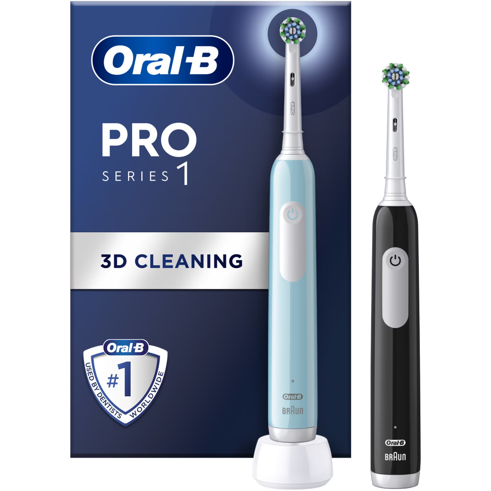 Set 2x Periuta de dinti electrica Oral-B Pro 1, Curatare 3D, 3 programe, 1 capat de periaj, Negru/Albastru