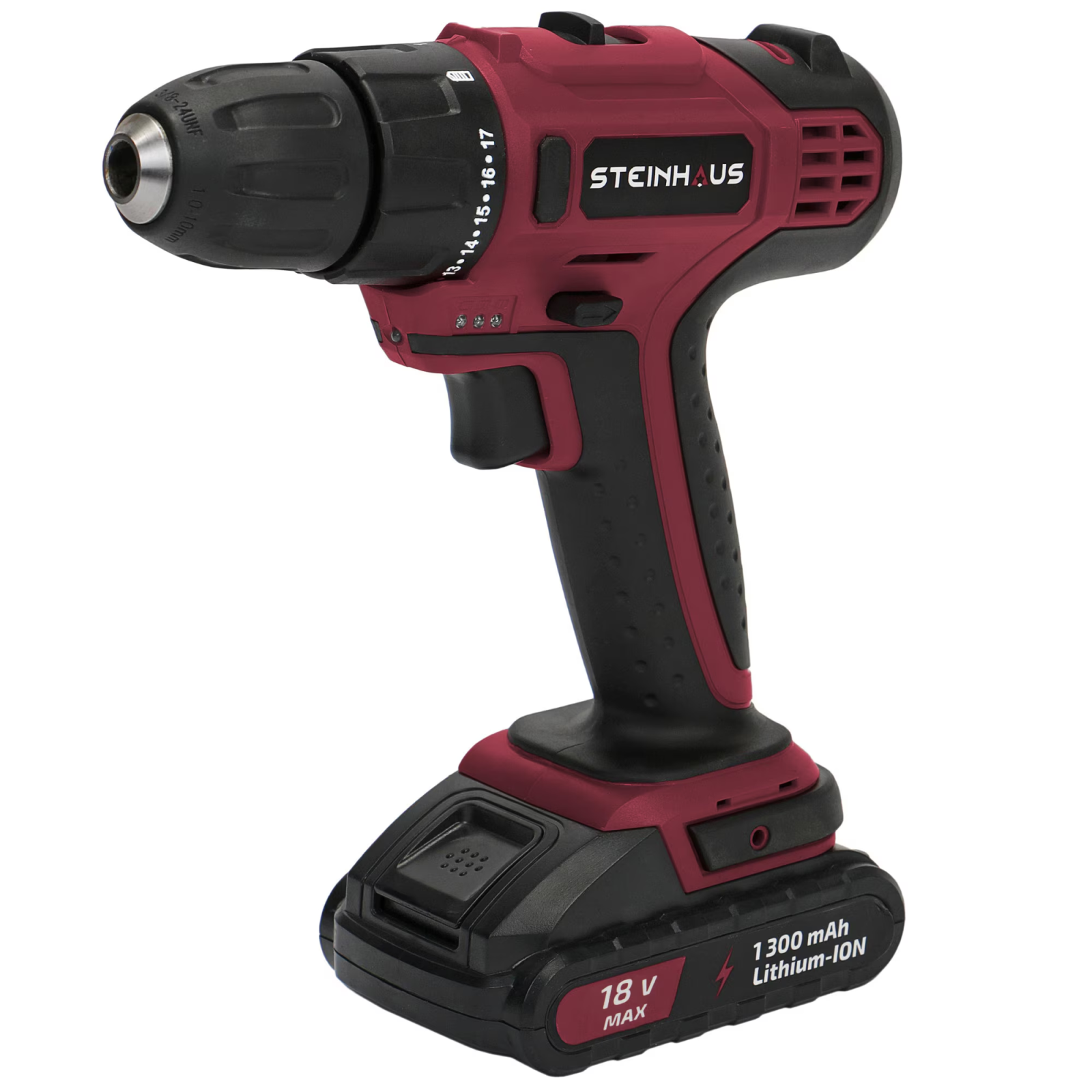 Masina de gaurit si insurubat (bormasina) cu acumulator 18V 1.3Ah Li-Ion Steinhaus, PRO-CD18X, 30Nm, 17 trepte torsiune, 2 trepte turatie 400/1500 RPM
